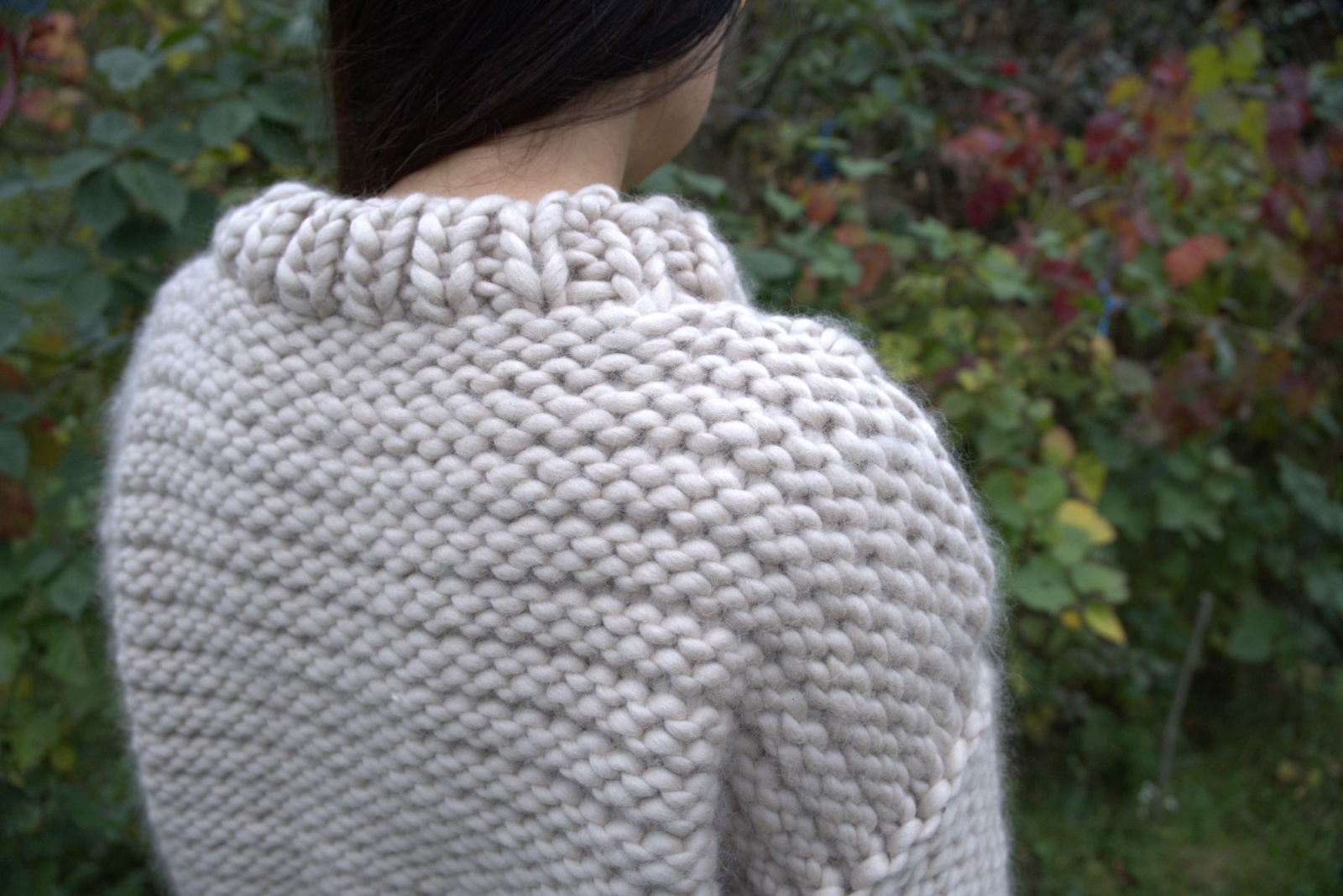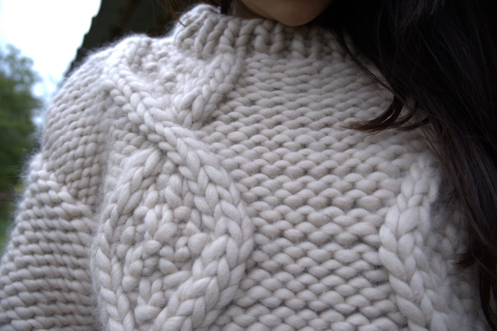 Pulover tricotat manual din lână merino extra fină, cu design inspirat de liniștea și textura ninsorii.